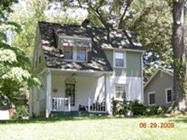 House. Non-contributing, after 1954. Ranch style one-story plus basement house. Walls are brick veneer, with a side gable roof. Casement and multi-light picture windows. Carport on the south side. Good condition. (Sanborn maps)